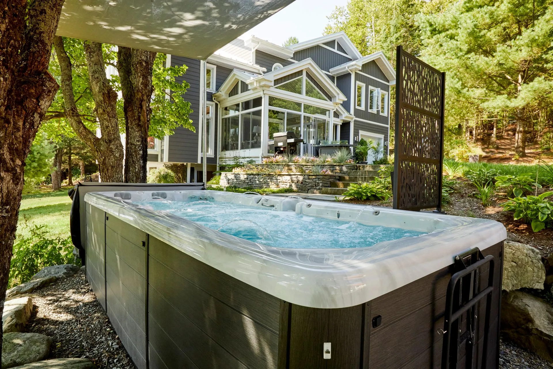 “This has been one of the best purchases my family has ever made. The K.1000 touch screen control panel makes it so simple to operate both the swim functions and the lights; I can even use the app on my phone to get the tub warmed up so that it’s ready for me by the time I get outside. The exercise equipment is absolutely fantastic, and my son is glad he gets his own private training sessions when the school’s pool is closed. I can’t emphasize enough how happy we all are with this swim spa.”