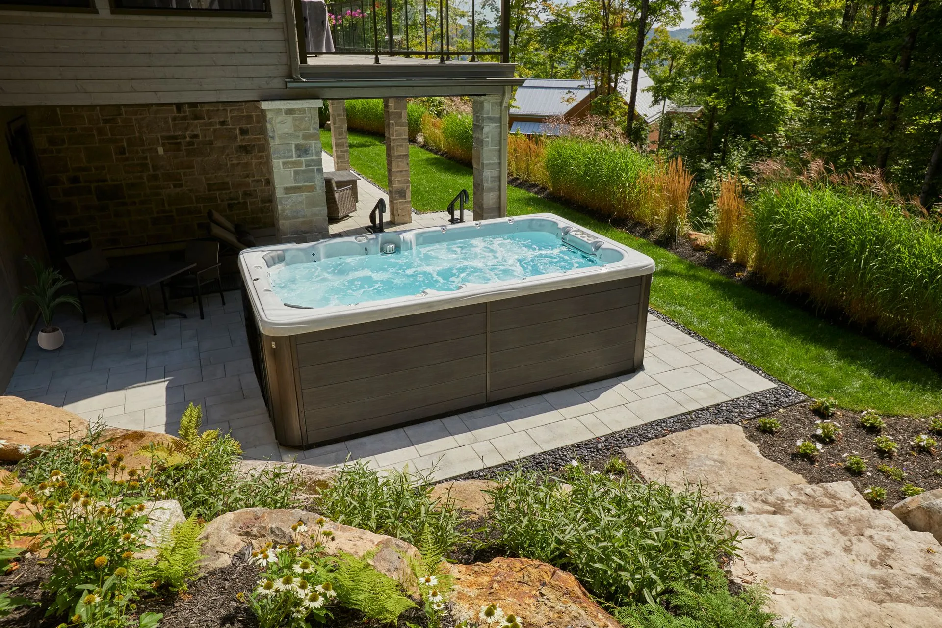 “I knew my husband wanted something that he could use to exercise, but I wanted to make sure I would also be able to enjoy our investment. Well, coming outside at night to relax in the lounge seat while my husband uses the rowing equipment has become the high point of my day. I like to use the In.Mix to set the lights on the controls and jets to suit whatever mood I’m in at the end of the day. I might not be using it for a work out like he is, but I definitely get our money’s worth in enjoyment.”
